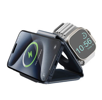 EnergEA Bazic GoMag Trio PLUS — складная беспроводная зарядка 3-в-1 с мощностью до 15 Вт, созданная для одновременной зарядки iPhone с MagSafe, кейса AirPods и Apple Watch. Мягкий на ощупь корпус с покрытием Soft-touch и встроенные магниты MagSafe обеспечивают точное позиционирование смартфона в портретном или ландшафтном режиме. Для iPhone 15 предусмотрено выступающее магнитное кольцо, защищающее камеру от контакта с поверхностью. Зарядка совместима со стандартом Qi, подходит для iPhone 8–11 и других смартфонов с Qi. Складывается для удобства хранения и поставляется с бархатным чехлом и кабелем USB-C длиной 1 м.
