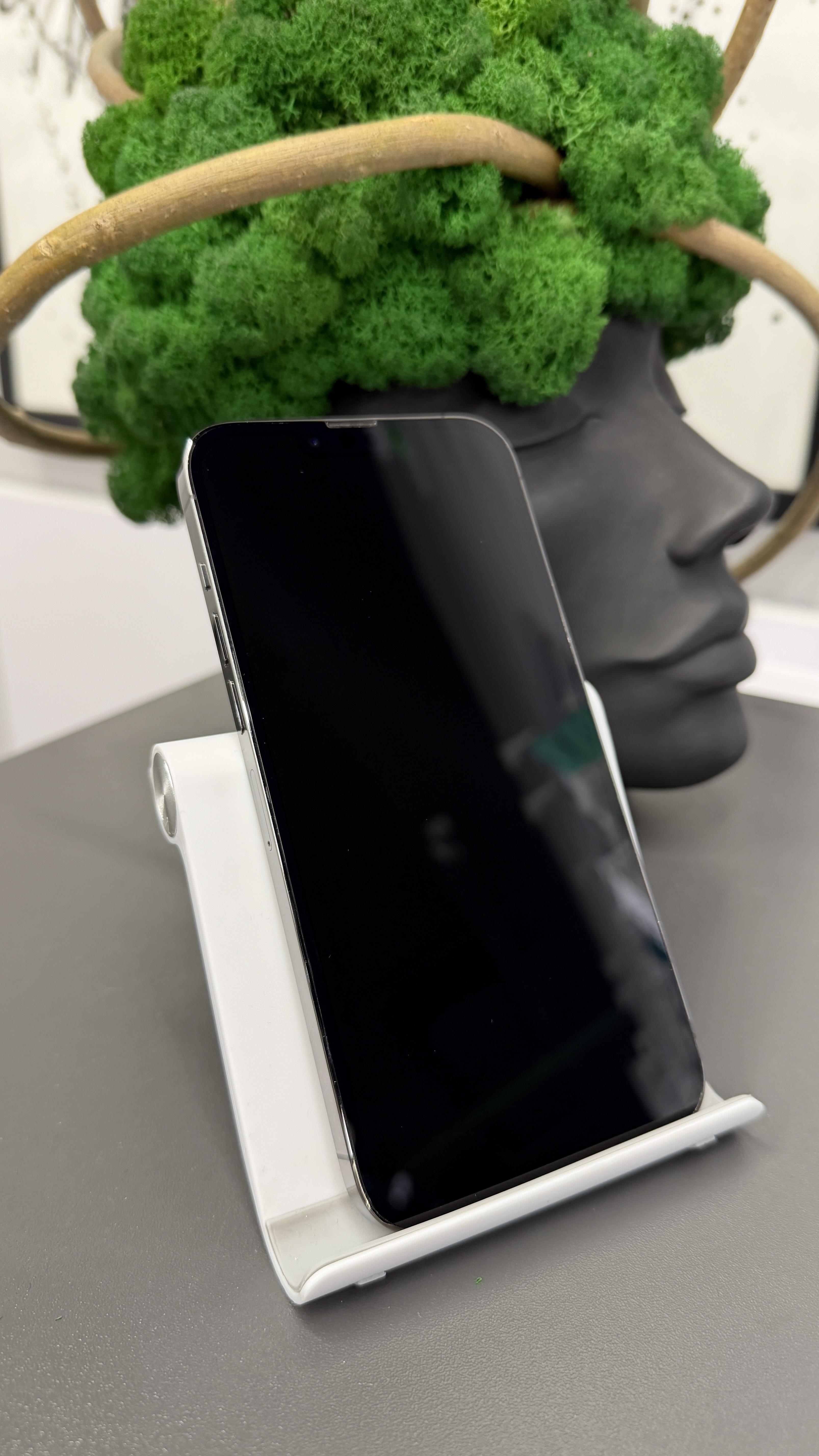Мощный, огромный сильный и стильный. Цвет Graphite — нестареющая классика, которая выглядит дорого в любой ситуации. По внешке: дисплей сохранился идеально, никаких царапин. На глянцевой стальной рамке есть еле заметные отметины, но это обычная история для полированной стали Apple. В чехле — вообще как новый.