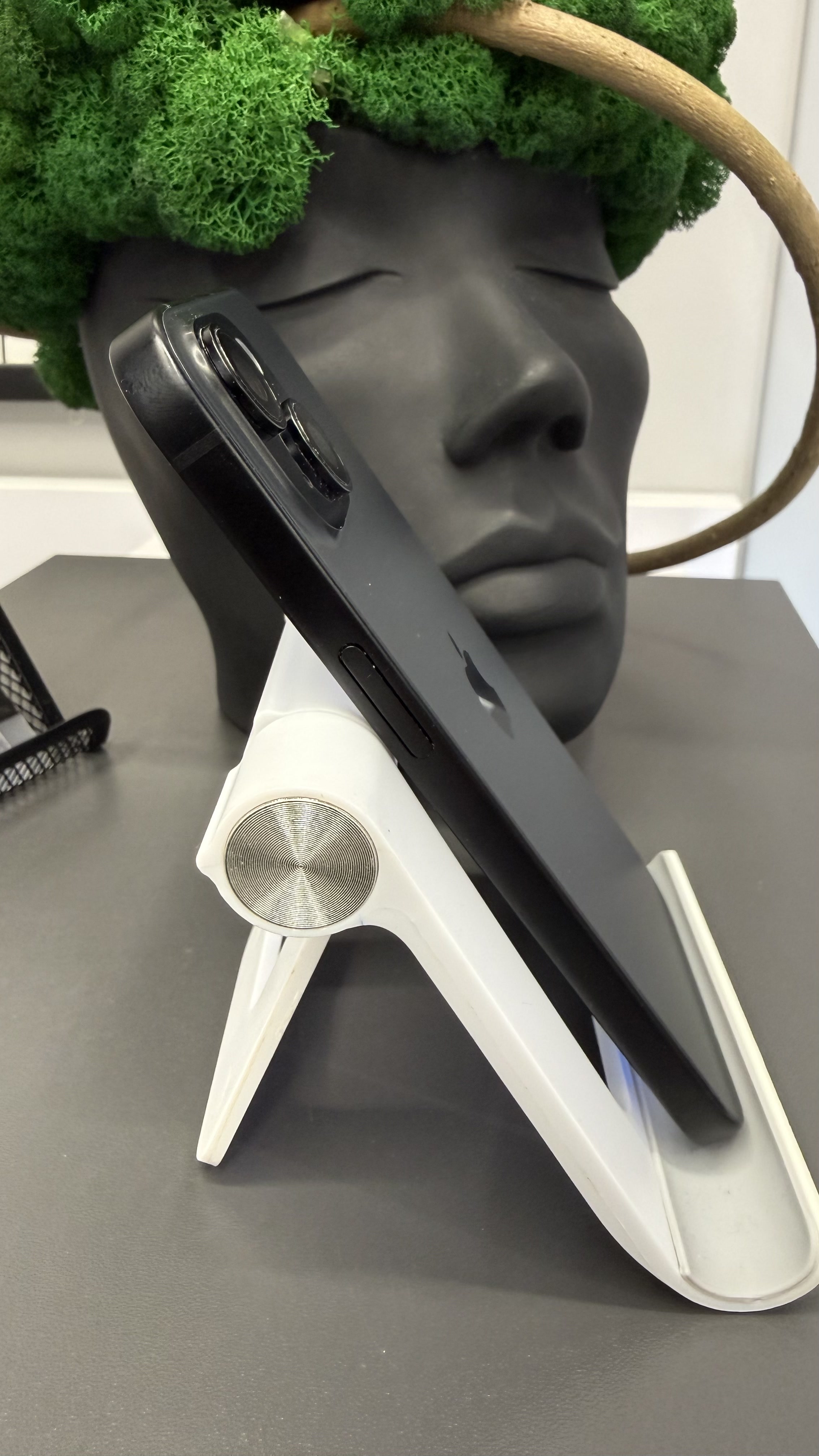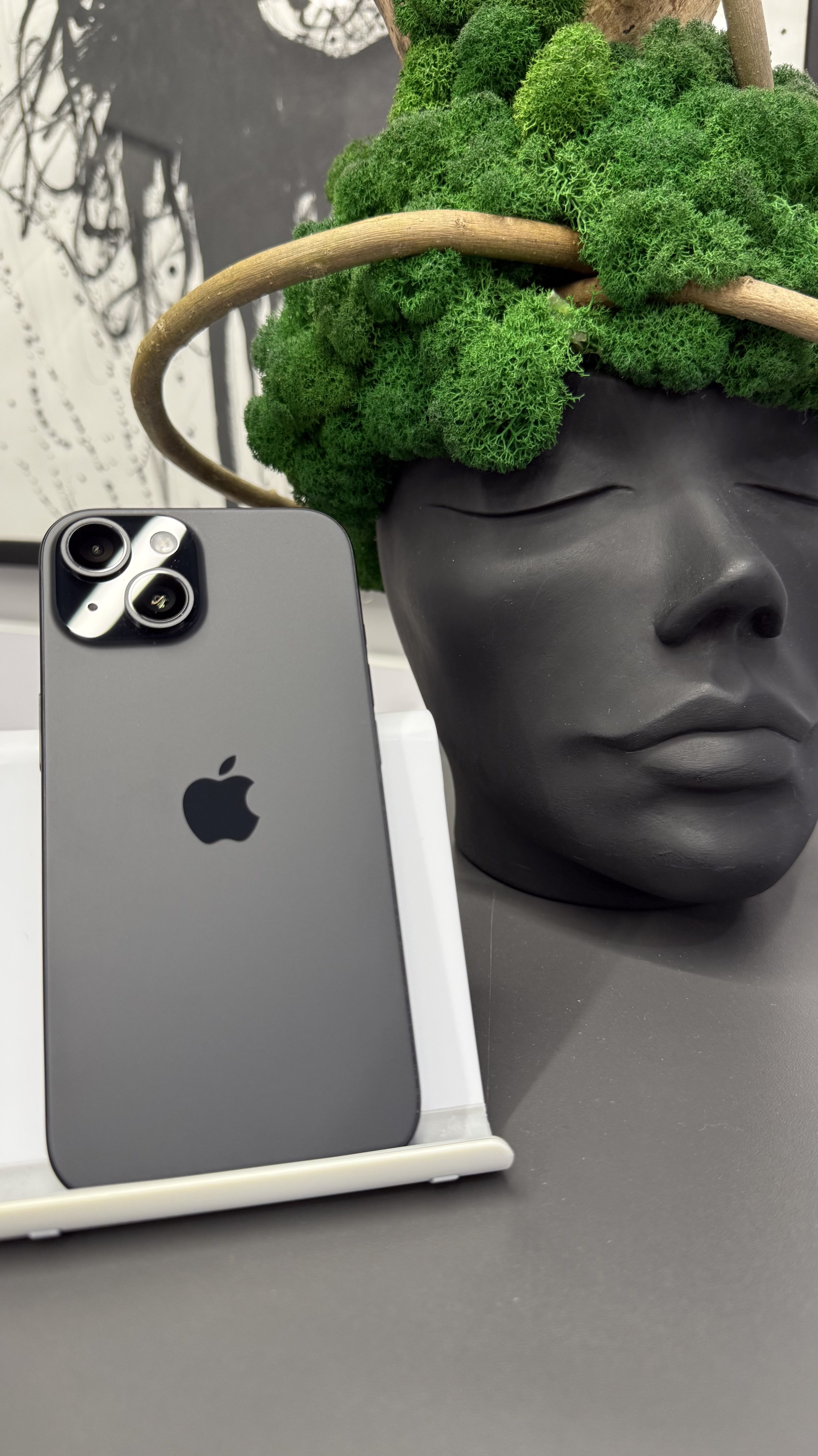 Базовая пятнашка, которая забрала себе лучшие фишки Pro-версий прошлого поколения. Привычную «челку» вытеснил интерактивный Dynamic Island, а на нижнем торце появился долгожданный разъем Type-C. Внутри стоит шустрый процессор A16 Bionic — его запаса прочности хватит на годы вперед для любых задач. Основная камера прокачалась до 48 мегапикселей, выдавая отличную детализацию на снимках. Матовая задняя панель в строгом черном цвете смотрится лаконично и почти не собирает отпечатки. Памяти 128 ГБ вполне достаточно для всех базовых приложений, рабочих файлов и архива фото.