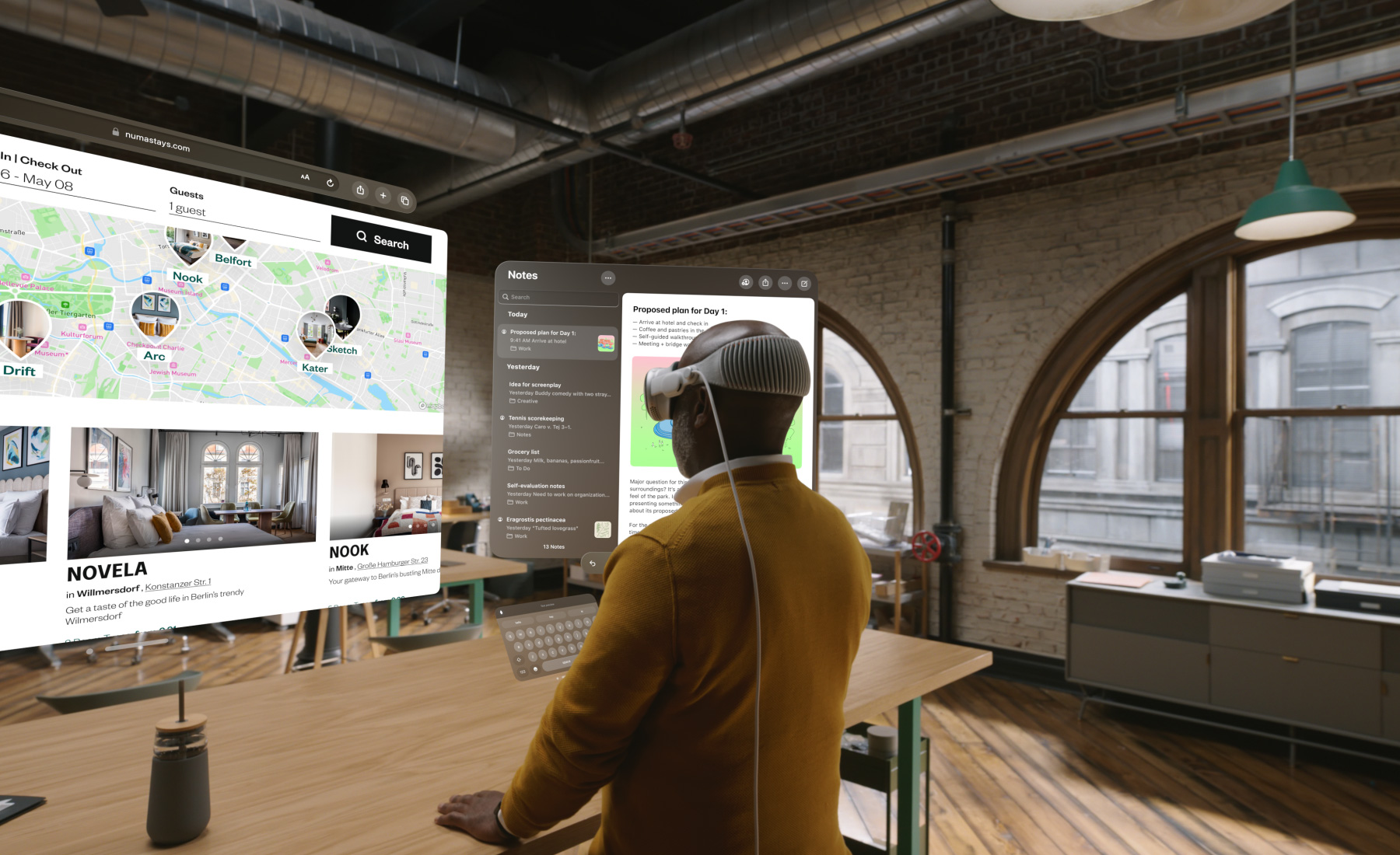 Apple Vision Pro переворачивает представление о взаимодействии с приложениями, позволяя им выходить за пределы обычного дисплея. Благодаря трехмерному интерфейсу visionOS, вы можете управлять приложениями, располагая их вокруг себя и масштабируя как душе угодно. Vision Pro создает идеальное рабочее пространство, где физическая реальность сливается с виртуальной.