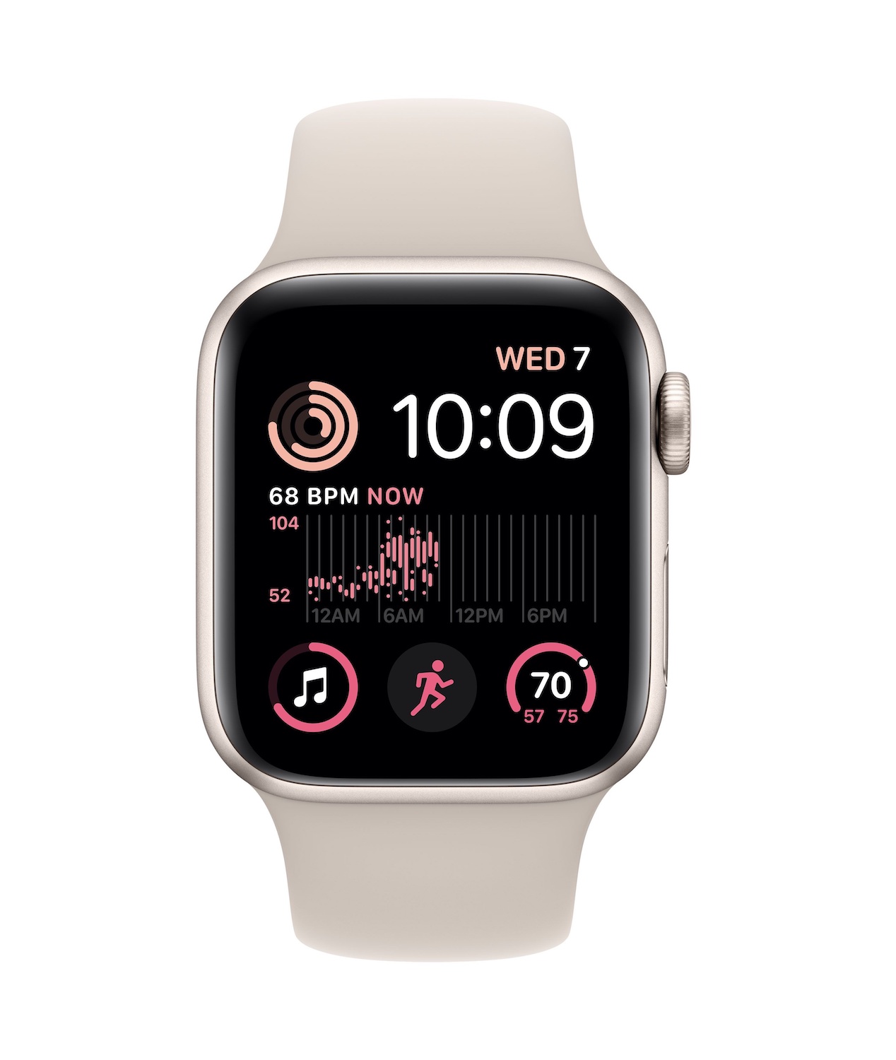 Apple Watch SE (2022) 40mm корпус из алюминия цвета «сияющая звезда», спортивный ремешок цвета «сияющая звезда» M/L