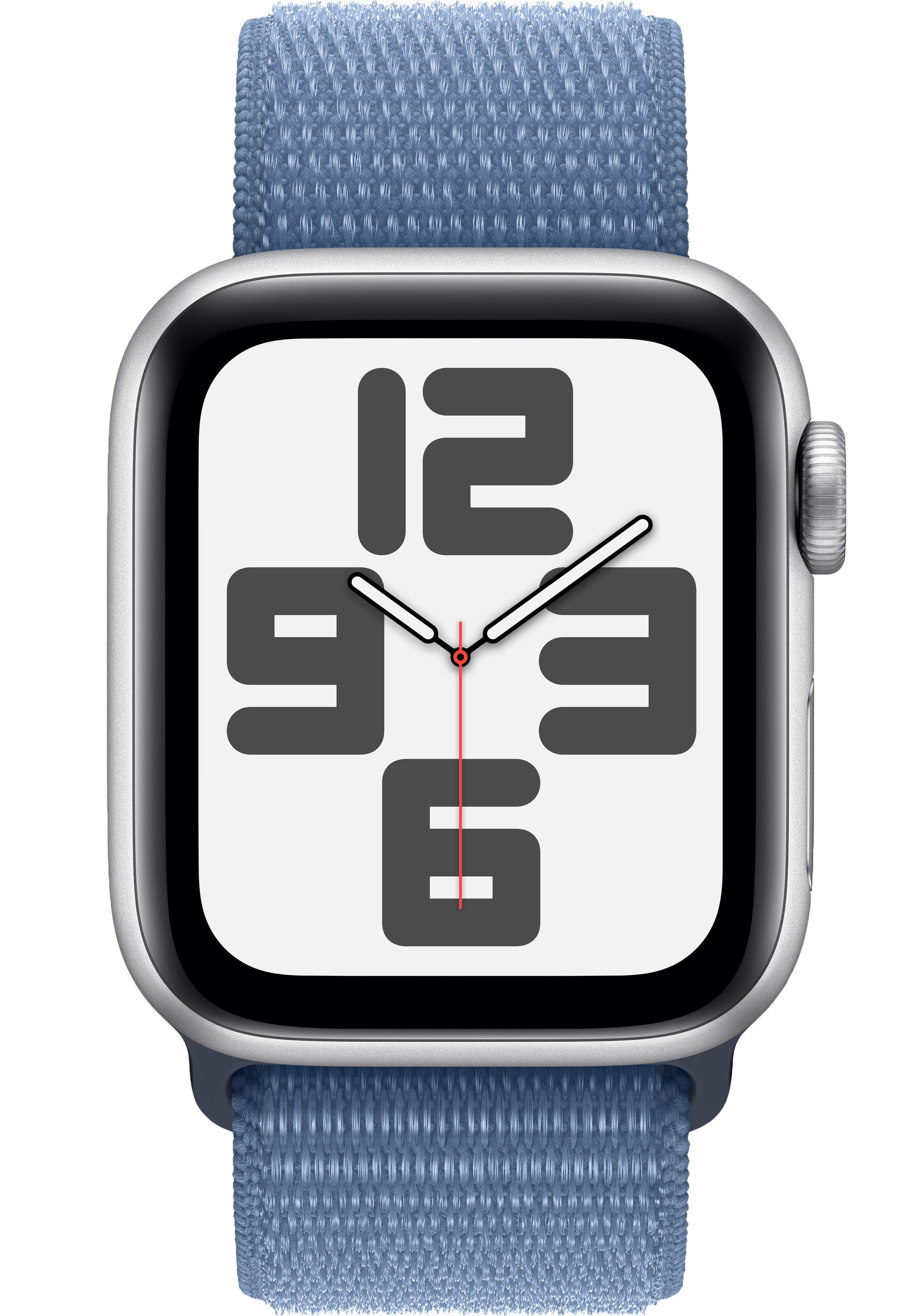 Apple Watch SE (2023) 40mm корпус из алюминия серебристого цвета, нейлоновый спортивный ремешок цвета «ледяной синий» (GPS)