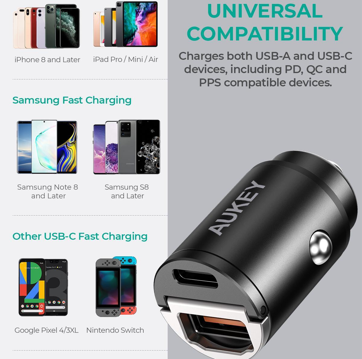 Автомобильное зарядное устройство AUKEY CC-A3 30W QC 3.0 и PD