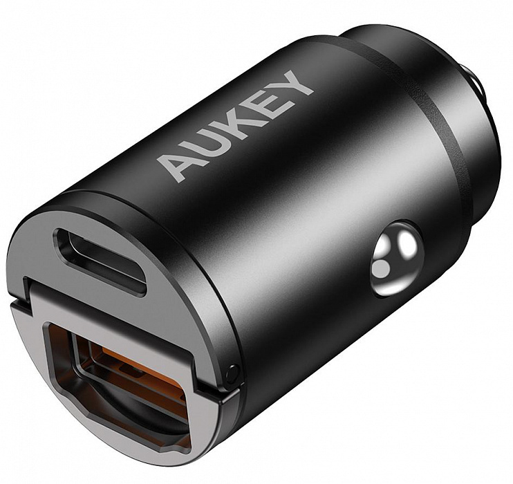 Удобство AUKEY CC-A3 заключается в том, что у нее есть сразу два порта: USB-C и стандартный USB-A. В одиночку USB-C может выдавать до 30Вт для быстрой зарядки устройства благодаря поддержке PowerDelivery. Здесь еще такие технологии, как Quick Charge 3.0 и AiPower. Все, чтобы зарядка проходила максимально быстро. Вся эта мощь помещается в небольшом алюминиевом корпусе. У зарядного устройства есть даже небольшая ручка, чтобы легко и быстро достать его при необходимости.