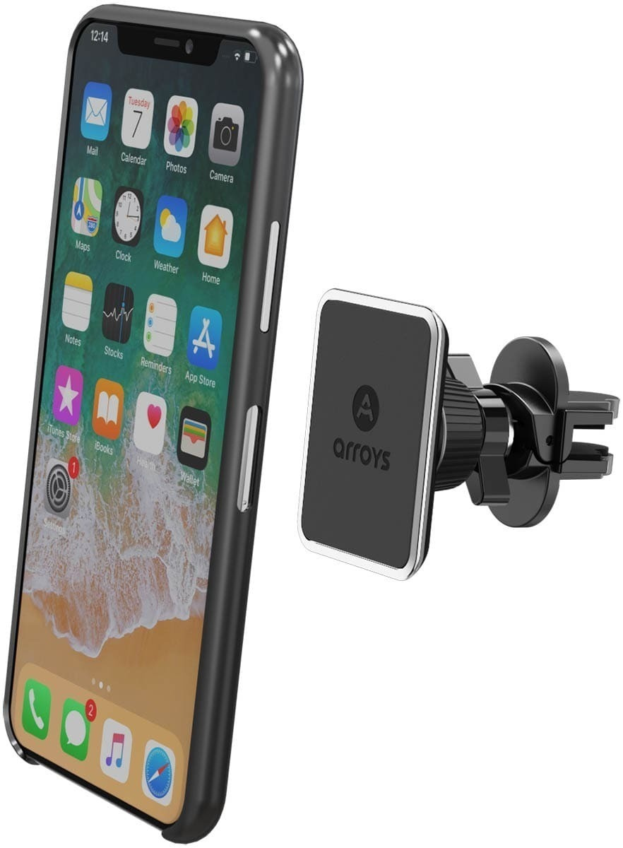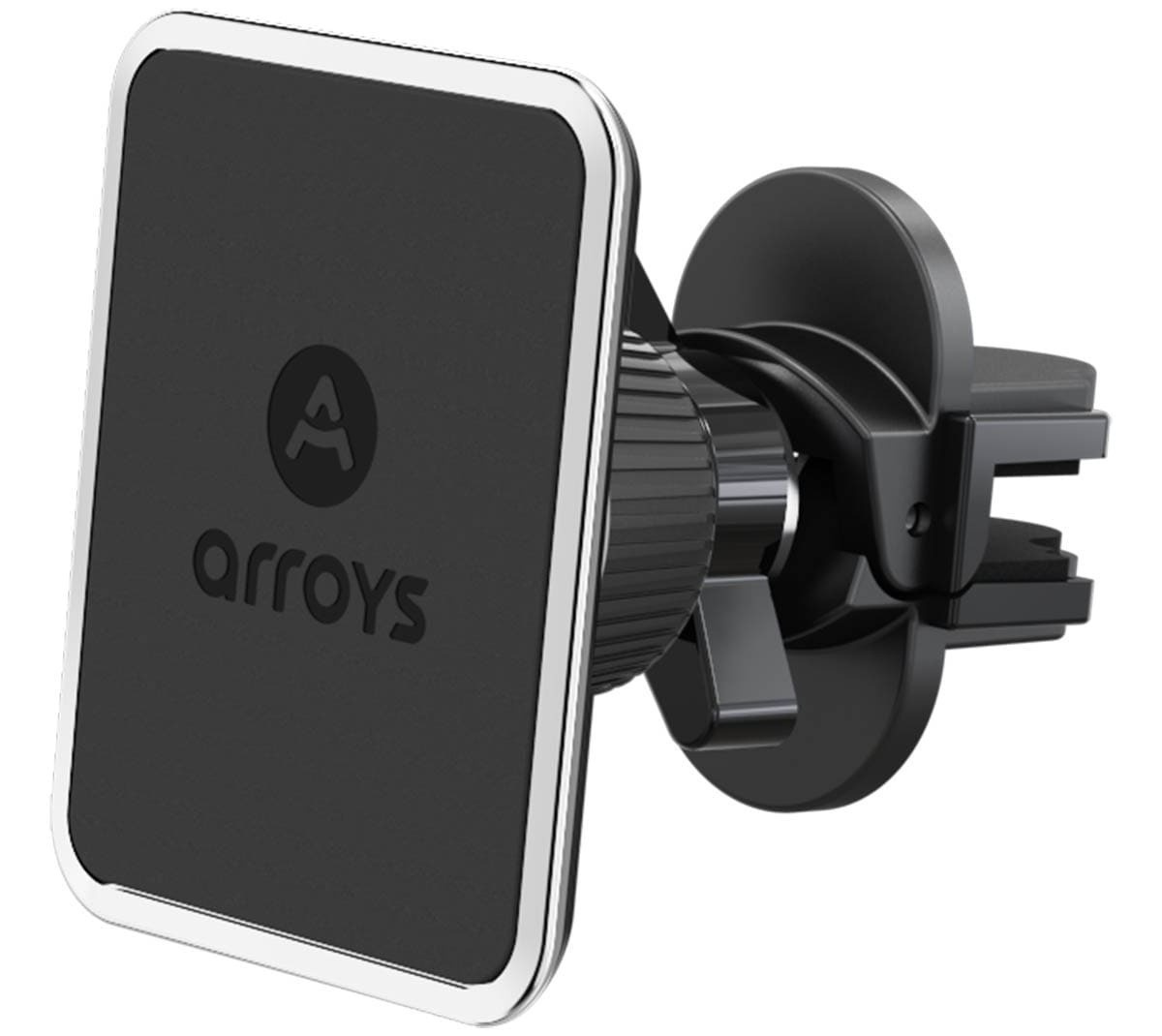 Arroys Vent One — это как лучший друг для твоего смартфона в машине: никуда не уедет (даже сам), крепко как скотч, но без липкой ленты. Крепится в дефлектор вентиляции с помощью вращающегося барашка — надежно сидит, даже если дорога похожа на русские горки. Шесть мощных неодимовых магнитов удержат не только телефон, но и небольшой планшет. Поворот 360° — подстроись под любой ракурс. Компактный, стильный и очень надёжный.