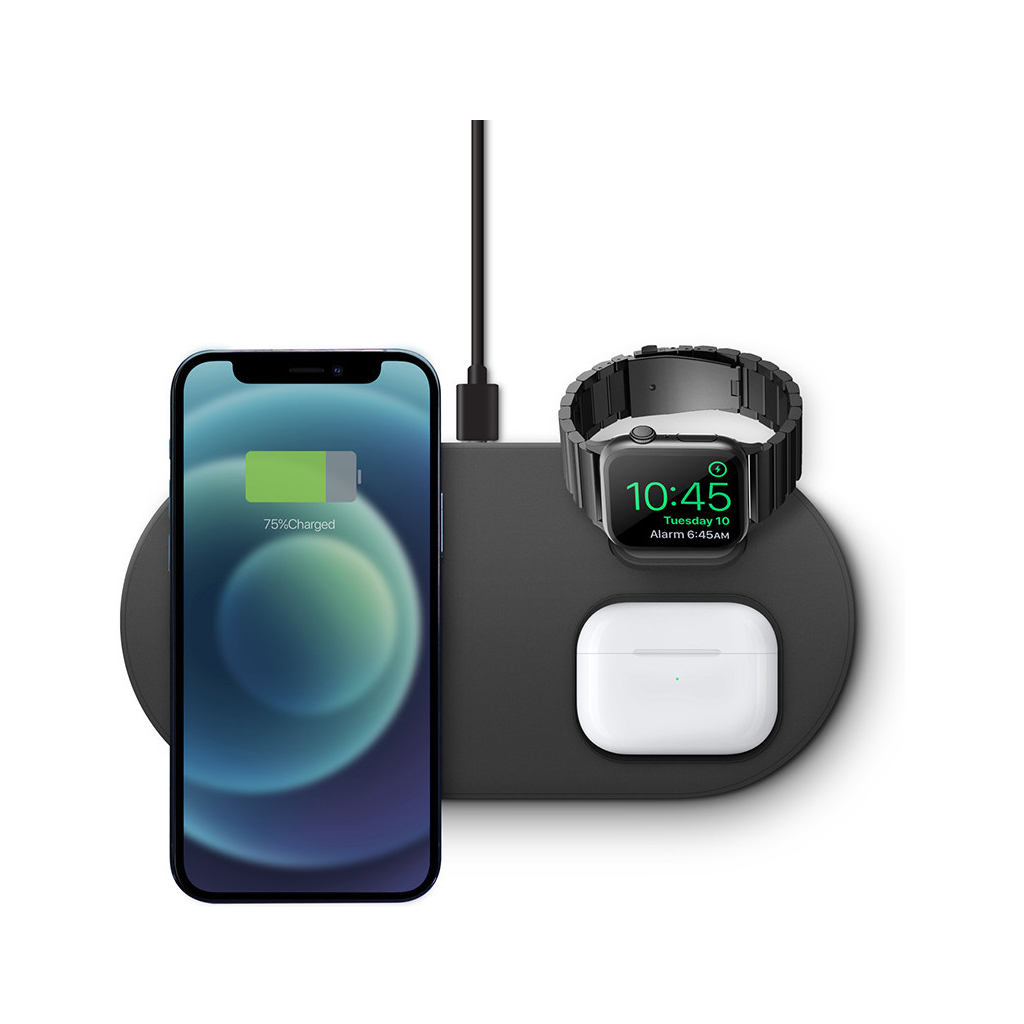 Satechi Magnetic 2-in-1 — стильная подставка, которая одновременно заряжает iPhone и наушники, экономя место на столе. Магниты MagSafe точно фиксируют iPhone 12 и новее в портретном или ландшафтном режиме, ускоряя зарядку. Поддержка Qi позволяет заряжать и более ранние модели iPhone или любые совместимые смартфоны. Нижняя площадка подходит для беспроводных наушников, а разъём USB-C обеспечивает быстрое подключение. Силиконовые накладки предотвращают скольжение, зарядка работает даже через чехол толщиной до 5 мм.