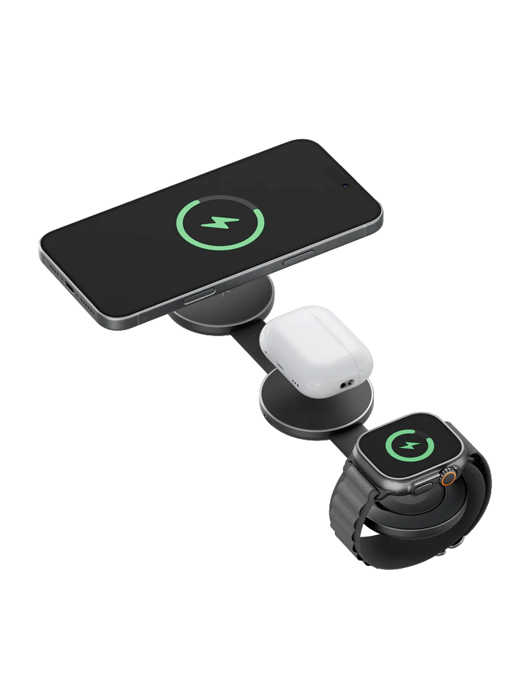 Беспроводное зарядное устройство Energea AluMag Trio 3in1 Foldable Qi2 Aluminium Wireless MagSafe 22.5W Gun