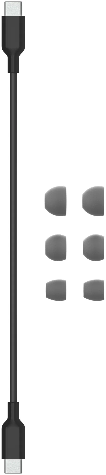 - Комплект — наушники, зарядный кейс, три пары амбушюр, кабель USB-C–USB-C, документация
