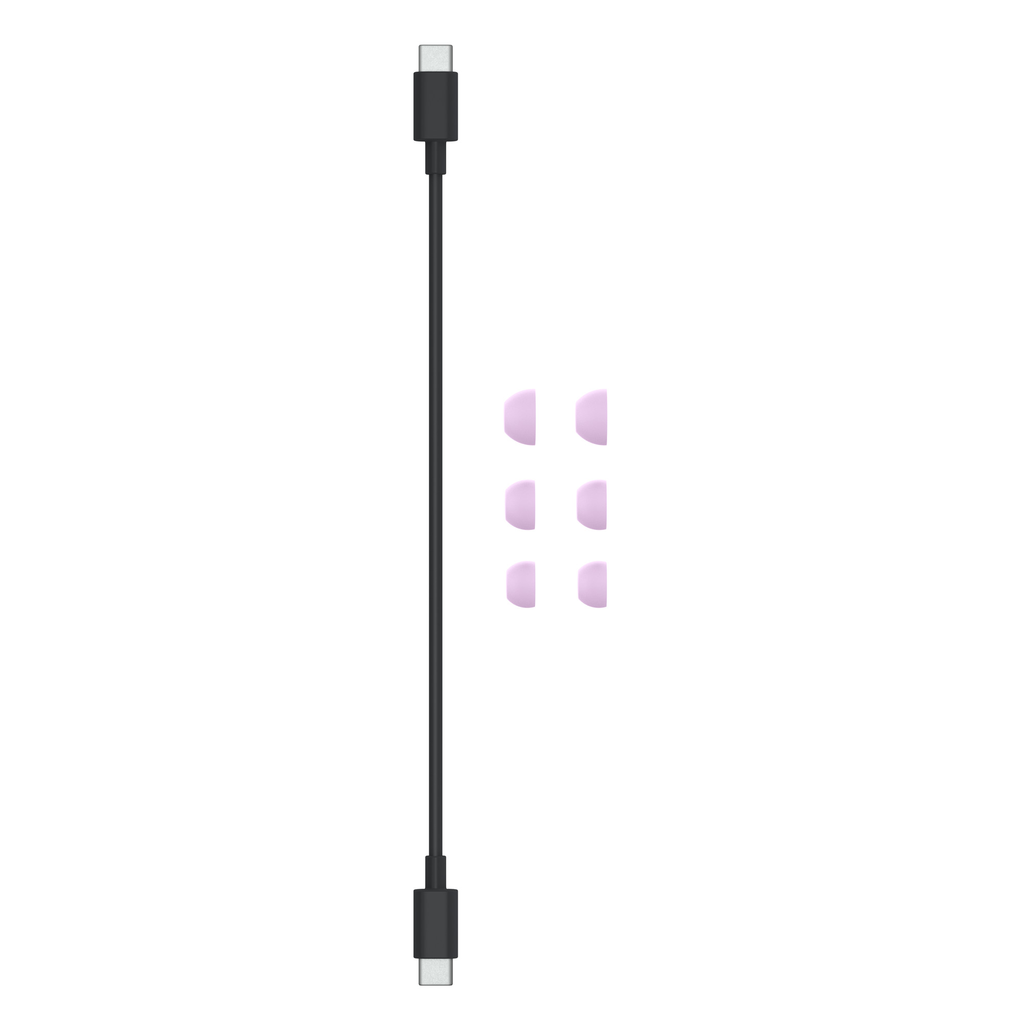 • Комплект — наушники, зарядный кейс, три пары амбушюр, кабель USB-C–USB-C, документация