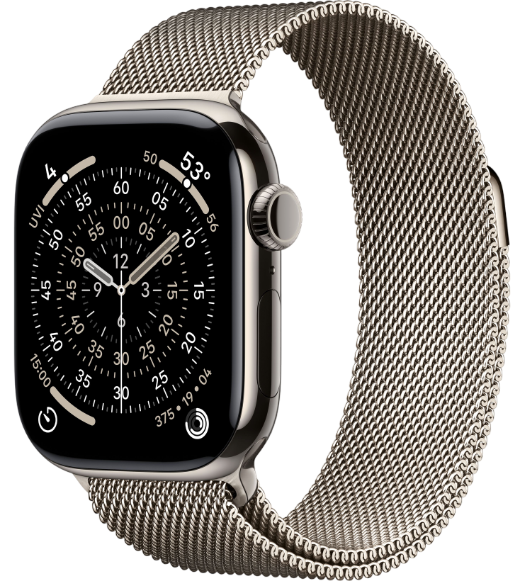 Часы стали тоньше, а дисплей — больше, благодаря новым размерам корпуса 42 и 46 мм. Яркость Always-On Retina дисплея достигает 2000 нит, что обеспечивает идеальную читаемость на солнце. Модели из титана оснащены сапфировым стеклом, что придаёт им особенно премиальный и строгий вид. Это самые изящные и прочные Apple Watch в истории.