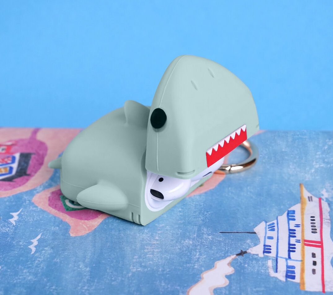 Эта милая, дружелюбная акула отпугнет пыль, грязь и любые повреждения, которые могут появиться в результате ежедневного использования. Пасть акулы – самое безопасное место для наушников. Сделан чехол из премиального силикона. Он, во-первых, долго прослужит и будет держать свою форму, а во-вторых, очень приятен на ощупь. Противоскользящее покрытие внутри позаботится о том, чтобы сидел он максимально плотно. Маленький акуленок готов путешествовать с вами всегда и везде, достаточно просто прикрепить его к сумке или ключам за специальный карабин.