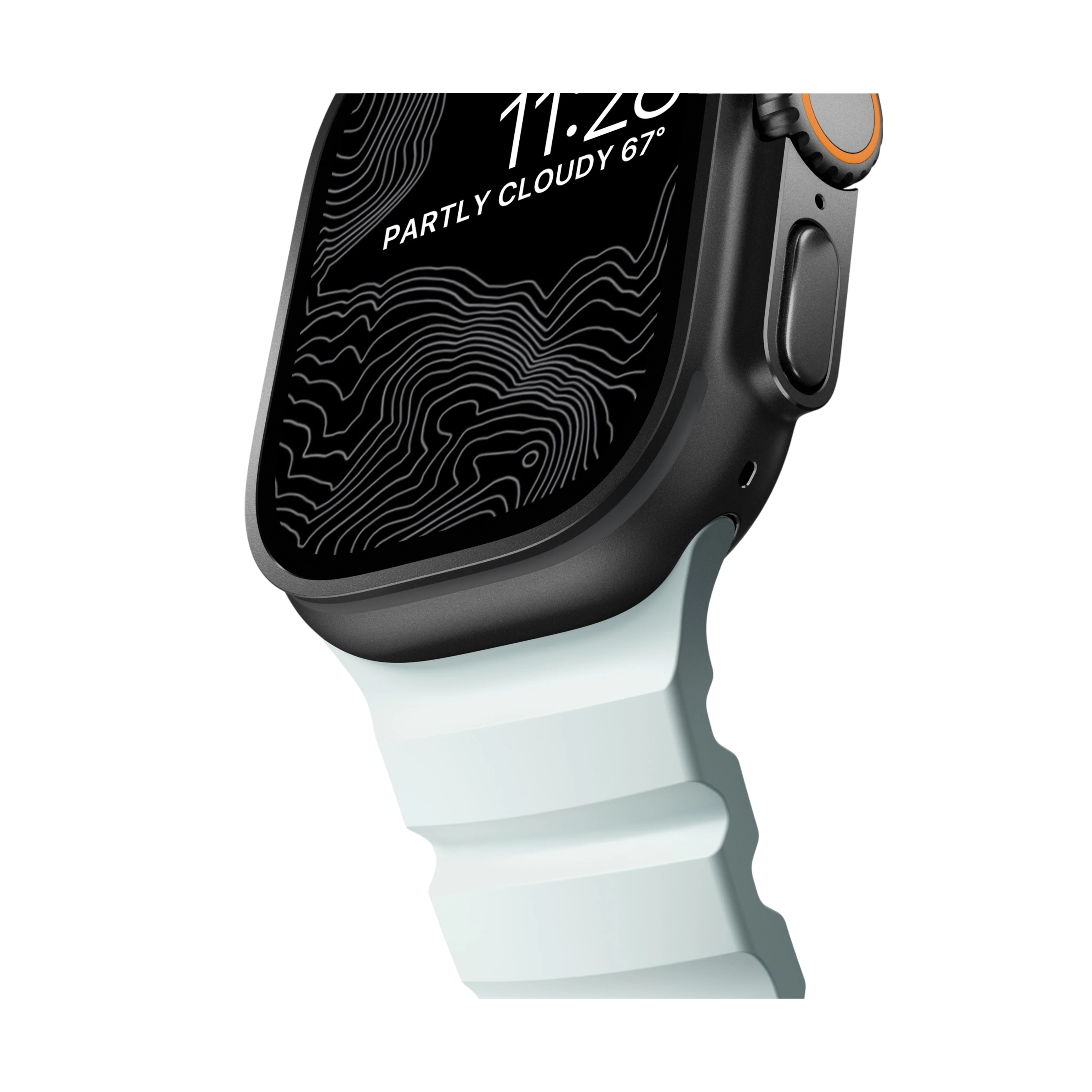 Nomad Rocky Point Band для Apple Watch (42/44/45/49 мм) — ремешок из FKM-фторэластомера с титановыми элементами. Лёгкий, прочный и водостойкий; создан для активной жизни, быстро сохнет и не боится пота. Серьезный ремешок для серьезных часов.