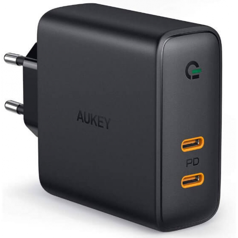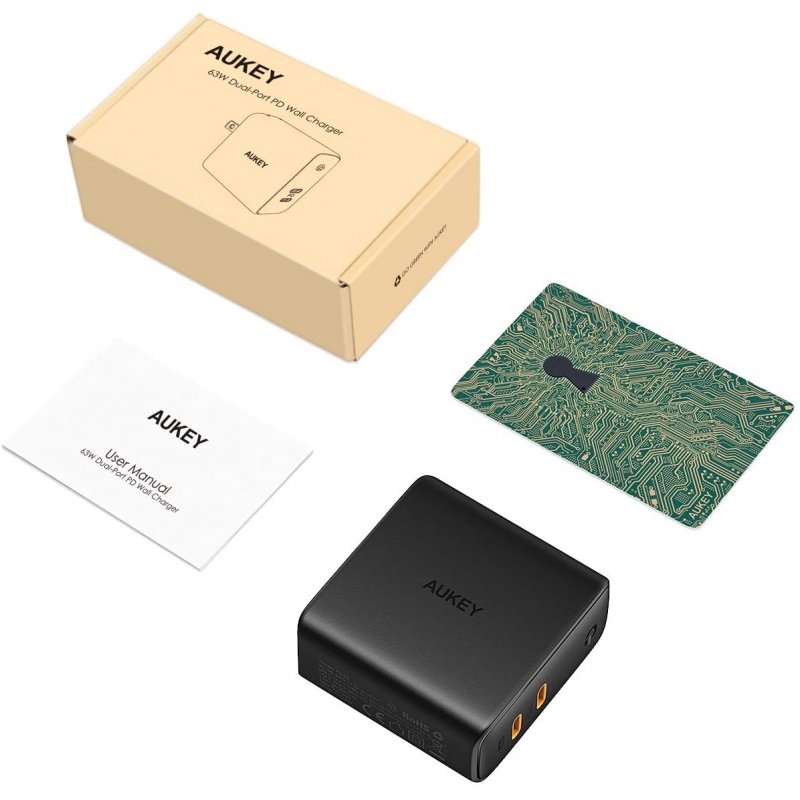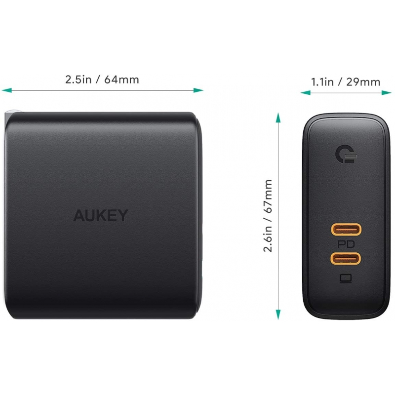 Сетевое зарядное устройство Aukey Focus Duo PD USB-C 63W Черное