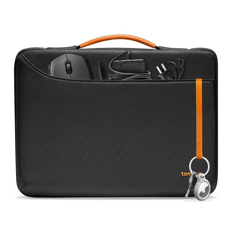 Сумка-чехол Tomtoc Defender A22 Laptop Handbag идеально подходит для вашего MacBook Pro 14. Изготовленная из прочных высококачественных материалов, эта сумка обеспечивает надежную защиту от внешних повреждений, грязи и пыли. Основное отделение открывается на 180° и оснащено встроенным "ремнем безопасности" для надежной фиксации ноутбука. Внутренняя толстая плюшевая подкладка амортизирует удары, а усиленные края и углы защищают от случайных падений. Передний карман на молнии предоставляет дополнительное пространство для аксессуаров и предметов первой необходимости. Специально разработанная выдвижная ручка позволяет использовать сумку в качестве портфеля: