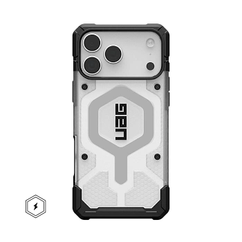 Черный цвет и рубленые грани — это классика UAG, которая не стареет. Конструкция здесь композитная: жесткий внешний каркас из поликарбоната принимает на себя острые удары и царапины, а мягкая внутренняя вставка гасит вибрации. Этот тандем защищает айфон при падениях с высоты до 5,5 метров. Магнитный модуль MagSafe встроен прямо в спинку: он мощный, отлично центрирует зарядку и держит тяжелый телефон на автомобильных держателях.