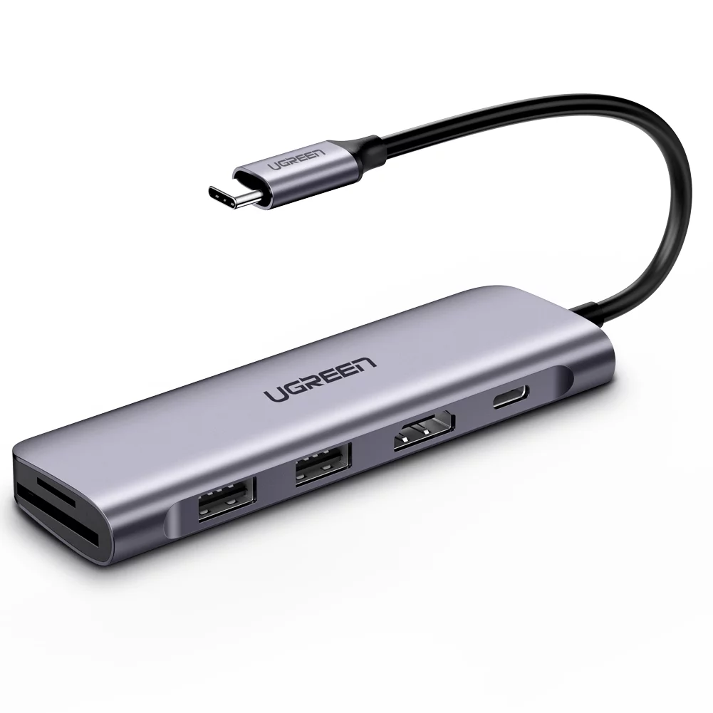 Usb - Хаб UGREEN CM195 (70411) USB-C to 2 Ports USB3.0-A Hub + HDMI + TF/SD with PD Power Supply Space Gray