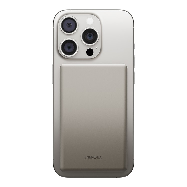 EnergEA AluPac Air 5K — компактный внешний аккумулятор в лёгком алюминиевом корпусе. Прищёлкивается к iPhone, заряжает без проводов до 15 Вт, а через USB-C выдаёт до 20 Вт по PD. Удобен для повседневного ношения: сильно не утяжеляет смартфон и помещается в карман.