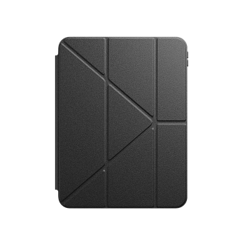 Задняя стенка чехла выполнена из прозрачного матового поликарбоната. Он не собирает царапины, не желтеет со временем и оставляет на виду логотип Apple. Лицевая обложка работает по принципу оригами: она легко складывается в устойчивую подставку с четырьмя углами наклона. Никаких сложных механизмов — только продуманная эргономика для комфортной печати, рисования или звонков.