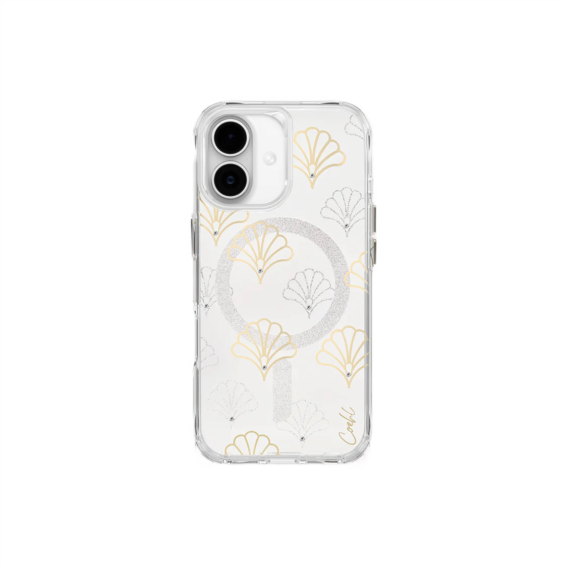 Главная магия Maree — в его дизайне. Прозрачная основа украшена изящным узором из ракушек с глиттерным напылением и инкрустированным 3D-кристаллом Illumine™, который ловит свет при каждом движении. Рисунок нанесён по технологии IML (In-Mould Labelling), что означает, что он вплавлен в материал и никогда не сотрется, не потускнеет и не поцарапается. Это вечная красота, заключённая в прочную оболочку.