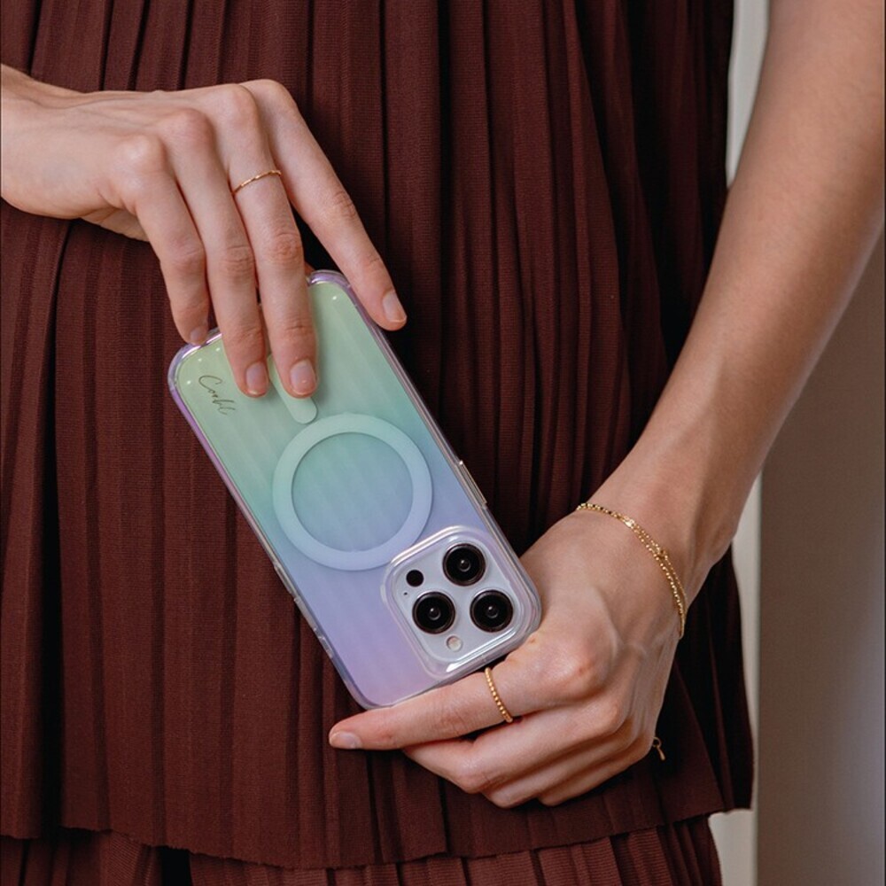 Обеспечьте своему iPhone 15 стильную и надежную защиту с чехлом Uniq Coehl Linear Iridescent. Этот чехол для iPhone выполнен из высококачественного силикона нового типа, который не только гибок, но и устойчив к пожелтению. Перламутровый голографический эффект задней поверхности придает устройству неповторимый вид, меняющийся под разными углами: